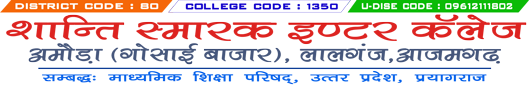 The location of SHANTI SMARAK INTER COLLEGE is AMAURA, AZAMGARH. The year of establishment of SHANTI SMARAK INTER COLLEGE is SHANTI SMARAK INTER COLLEGE is a Co-Education school. The student teacher ratio of SHANTI SMARAK INTER COLLEGE can be approximated to be 1 teacher for every 40 students.